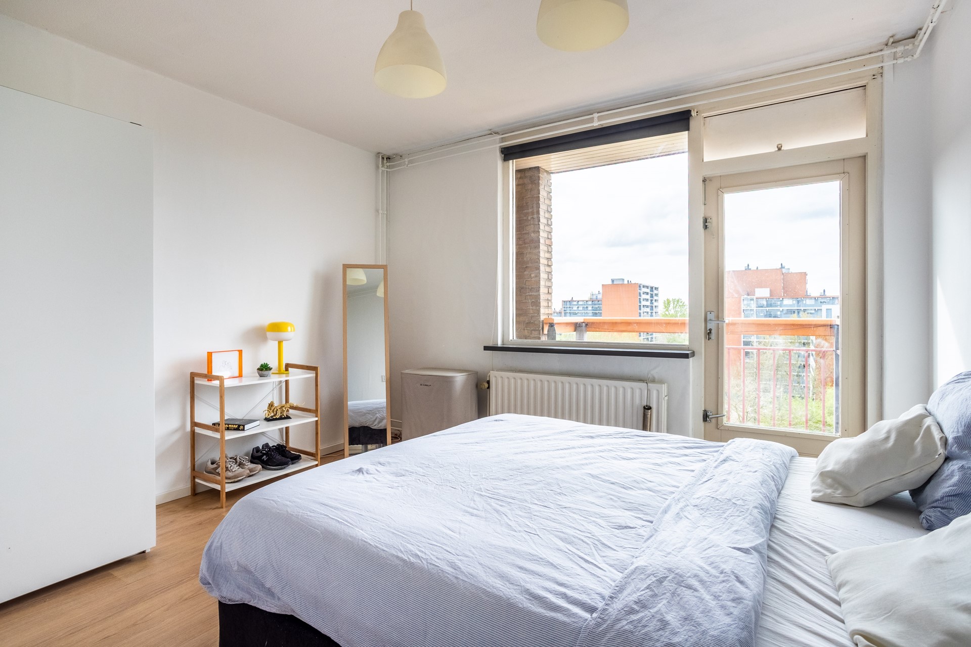 De in 2023 vernieuwde badkamer is modern en fris, voorzien van een ruime inloopdouche, wastafelmeubel en wandcloset. Via de eerste woonlaag is er toegang tot het zonnige zuidgelegen balkon, waar je heerlijk kunt ontspannen en genieten van het weidse uitzicht. De ruime slaapkamer biedt voldoende plek voor een groot bed en kledingkast en geeft bovendien toegang tot het balkon. Een fijne plek om de dag rustig te beginnen of juist af te sluiten.
